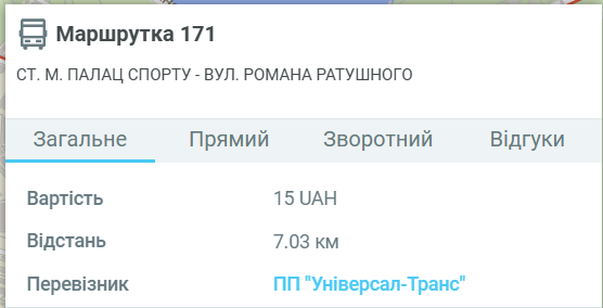 Перед посадкою зверніть увагу на оновлені тарифи й довжину маршруту. Вартість поїздки визначається перевізником і відрізняється від стандартного тарифу комунального транспорту. Протяжність маршруту наразі перевищує 7 кілометрів.