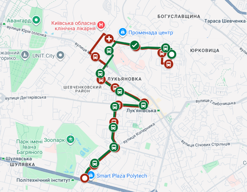 - Можлива пересадка на метро («Лук’янівська», «Політехнічний інститут»)