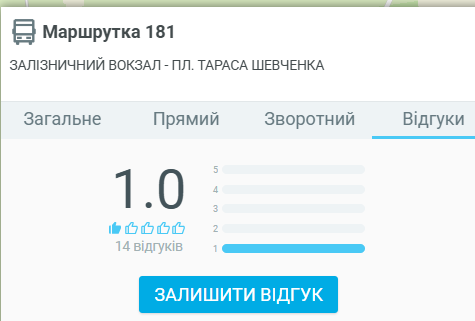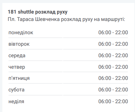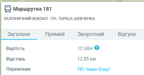 Основна інформація про маршрутку №181