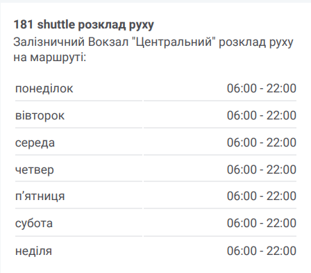Розклад маршруту 181 в києві