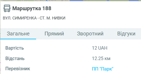 Де їздить маршрутка 188 Київ (райони та вулиці)