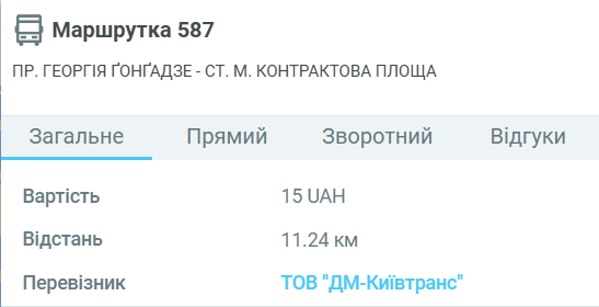 Альтернативи маршрутка 587 Київ