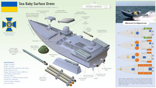 Я отмечаю резкий скачок в возможностях. Морской дрон Sea Baby получил большую дальность — 1500 км — и увеличил полезную нагрузку до 2000 кг. Платформа стала универсальной и способной не только таранить цели, но и вести точные удары. Это уже системное оружие для Черного моря, а не разовые рейды.