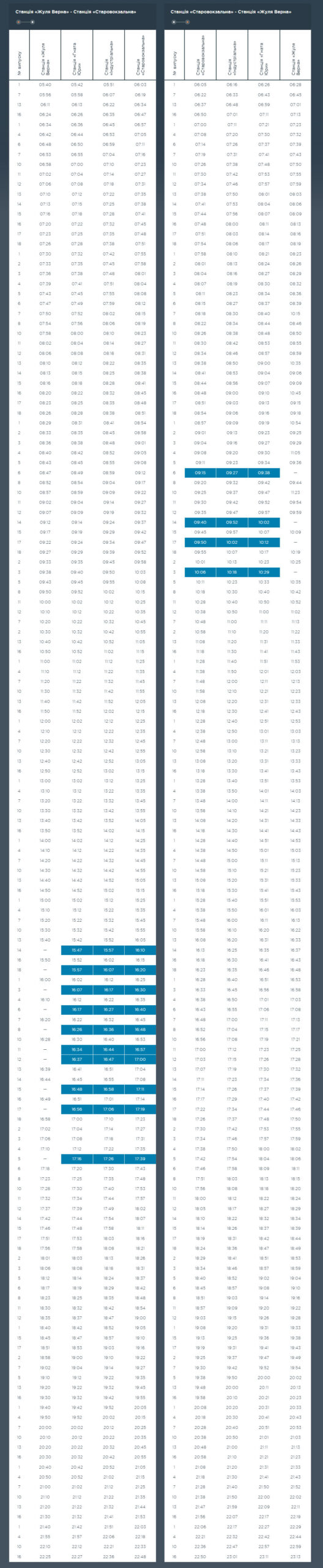 | Время работы | 5:40 – ~22:45 (ежедневно) |