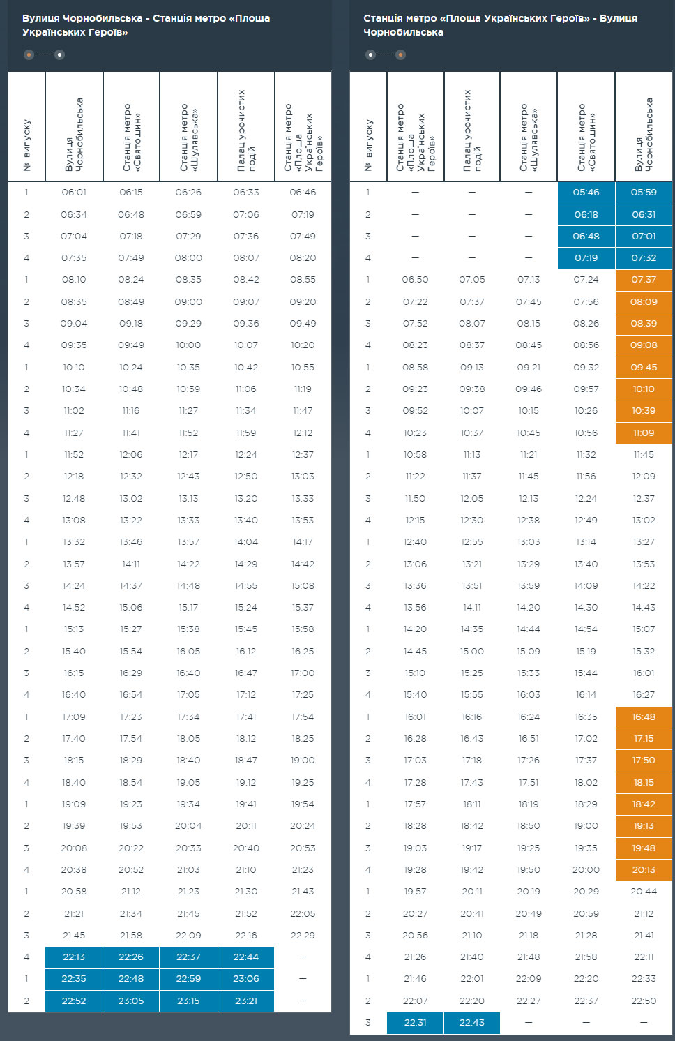- Маршрут: от ул. Чернобыльская до ст. м. «Площадь Украинских Героев»