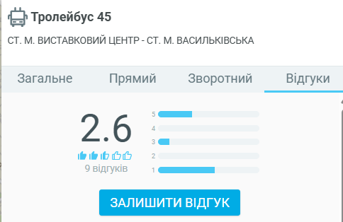 Актуальна схема розкладу руху тролейбусів по маршруту №45 у Києві