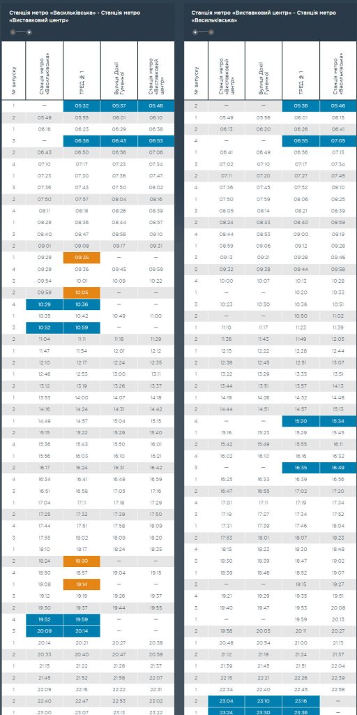 Зворотній напрямок (ст. м. «Васильківська» → ст. м. «Виставковий центр»)