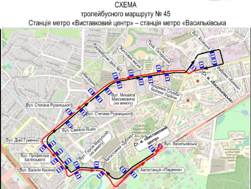| Маршрут | №45 (ст. м. «Виставковий центр» ↔ ст. м. «Васильківська») |