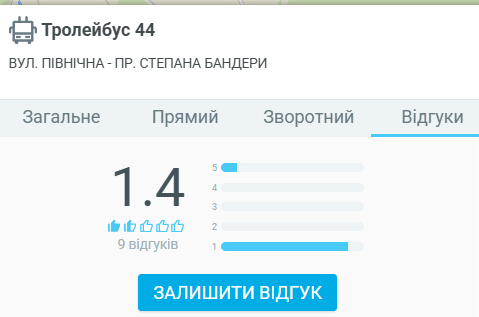 | Маршрут | №44 (вул. Північна ↔ просп. Степана Бандери) |