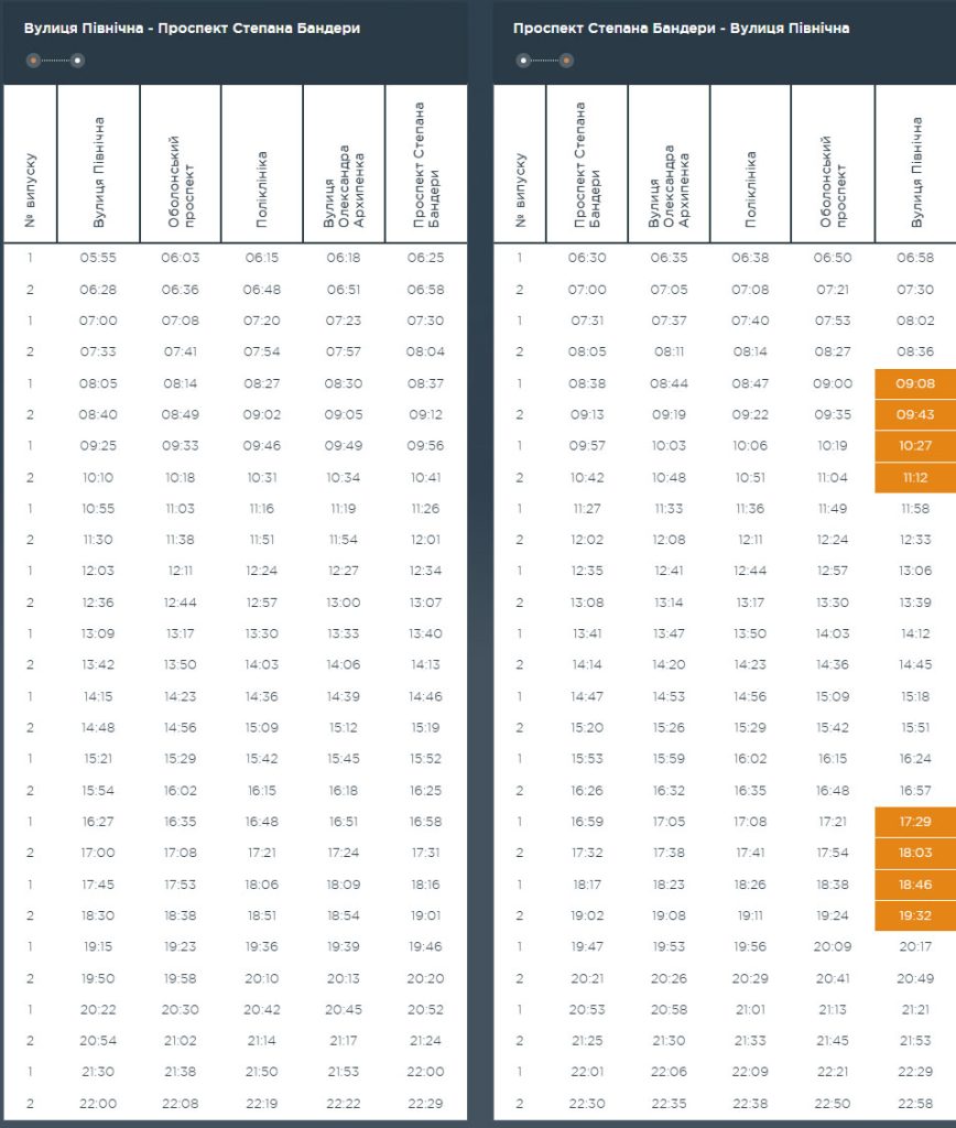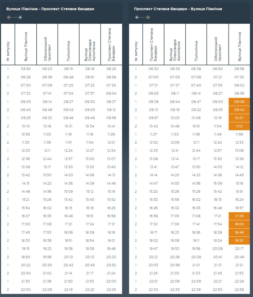 - Кінцеві: вул. Північна ↔ просп. Степана Бандери