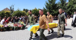 Сьогодні у Мукачеві відбулася церемонія прощання із загиблим воїном, 33-річним Іваном Лешаничем. Родина, друзі, знайомі, колеги та бойові побратими зібралися біля Кафедрального собору Різдва Божої Матері, щоб вшанувати пам’ять і віддати останню шану полеглому захиснику.