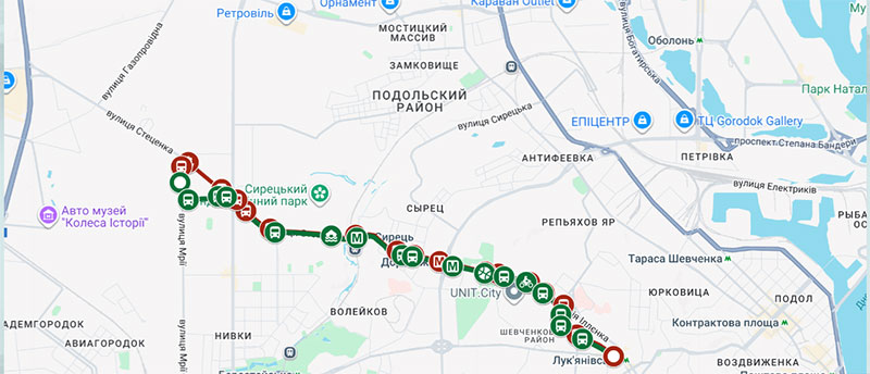 Прямий напрямок від М Лук’янівська до вул Мрії